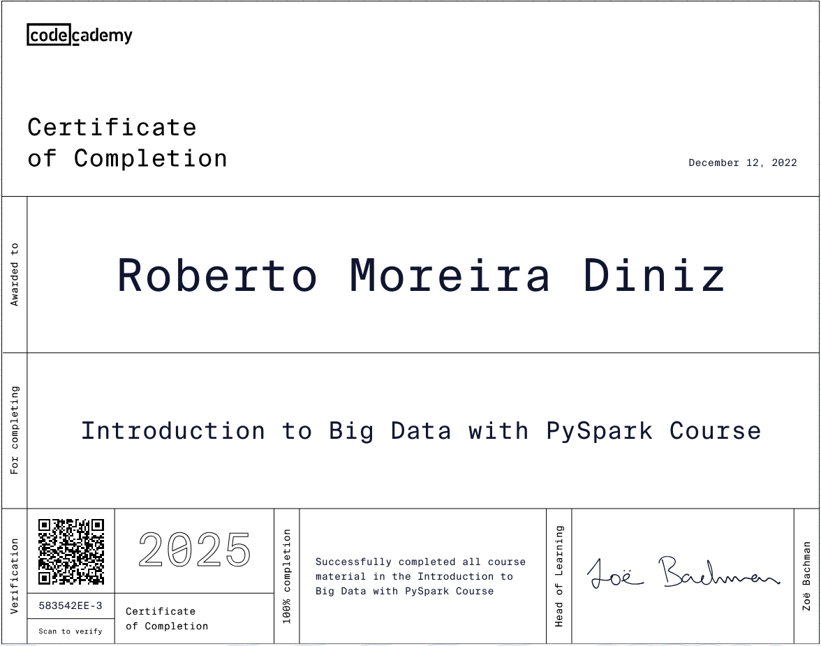 | Introduction to Big Data with PySpark | nan | CodeCademy | Course | 2022-12-12 | View |